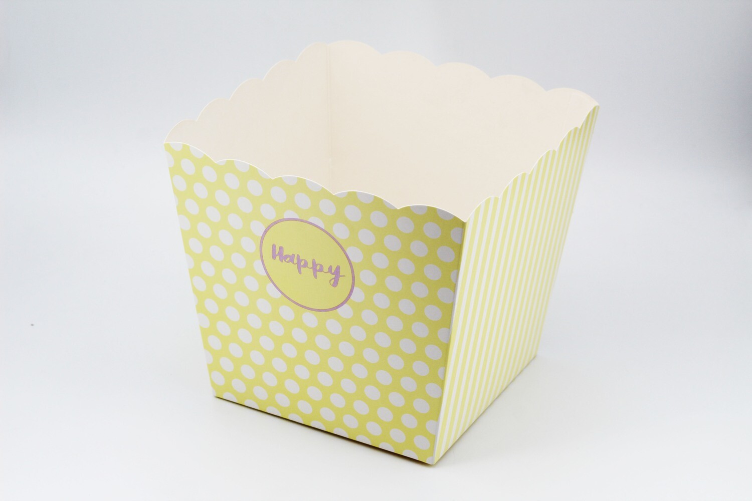 Vaso giallo porta coni per confettata dimensioni: H18 x L15x L15 cm.